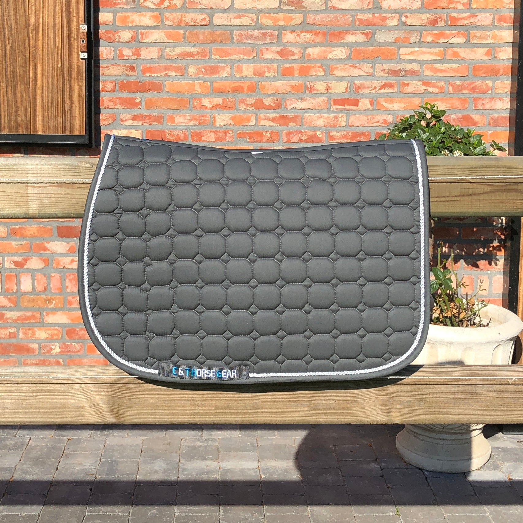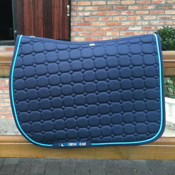 The saddle pads come in a wide range of color-combinations. The saddle pads aren't embroidered on both sides. That way, you can chose yourself if you want a logo, name,... on it.